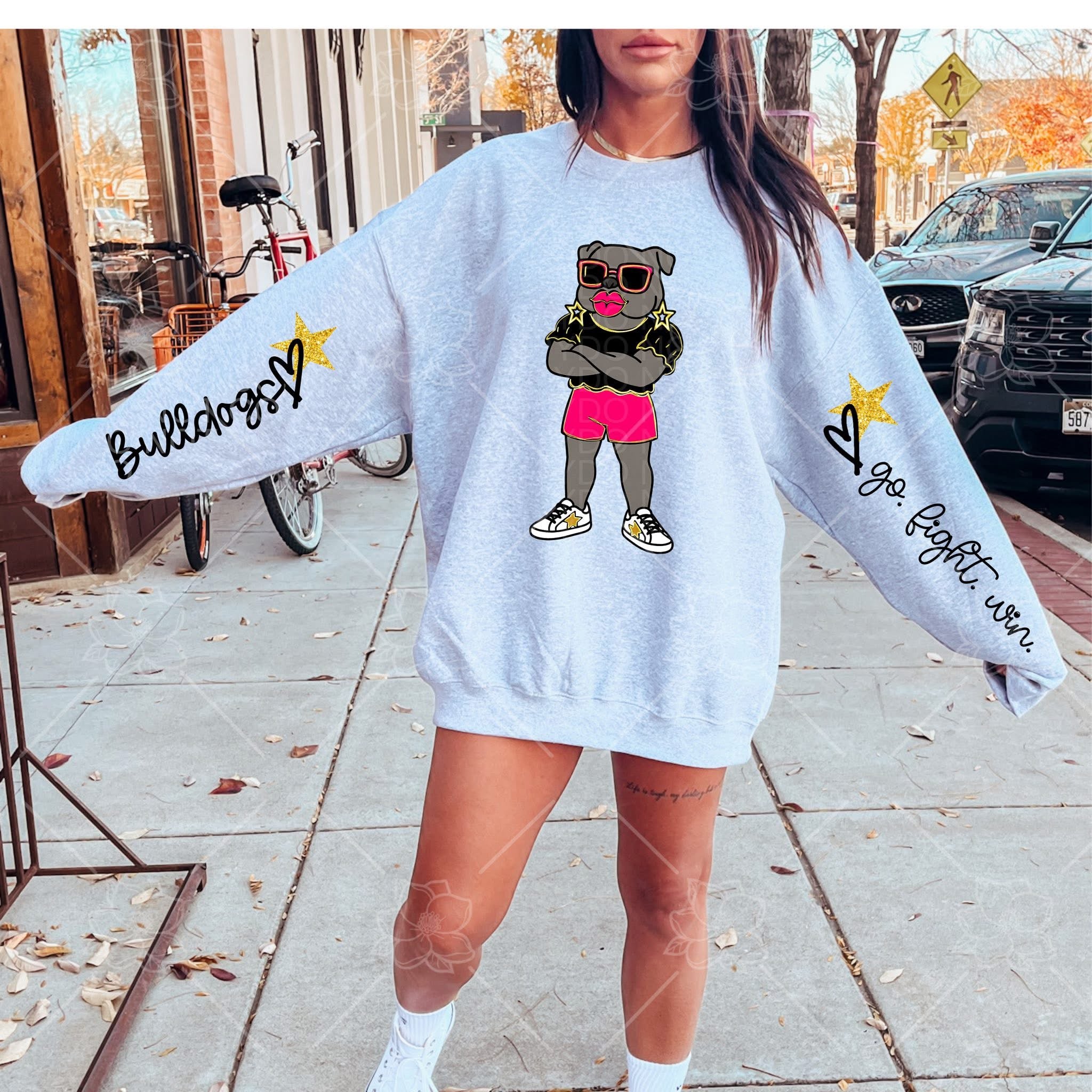 Bulldogs with your choice of a white or gray Bulldog on an ash gray crew neck. GILDAN crew neck. Unisex sizing this is so fun and trendy this year!