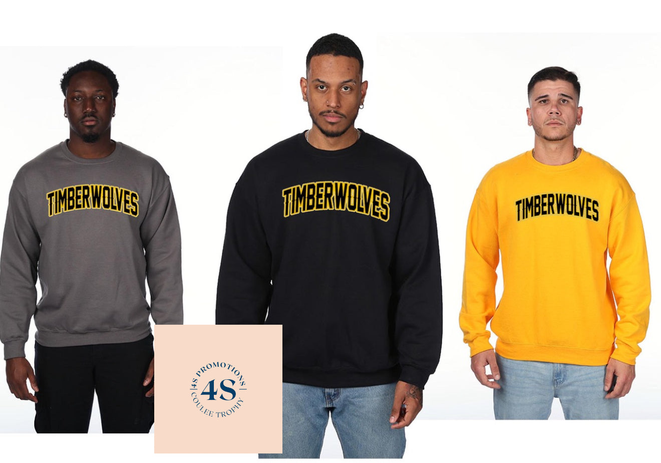 Timberwolves simple look printed on 2 different Garment options with 3 color choices